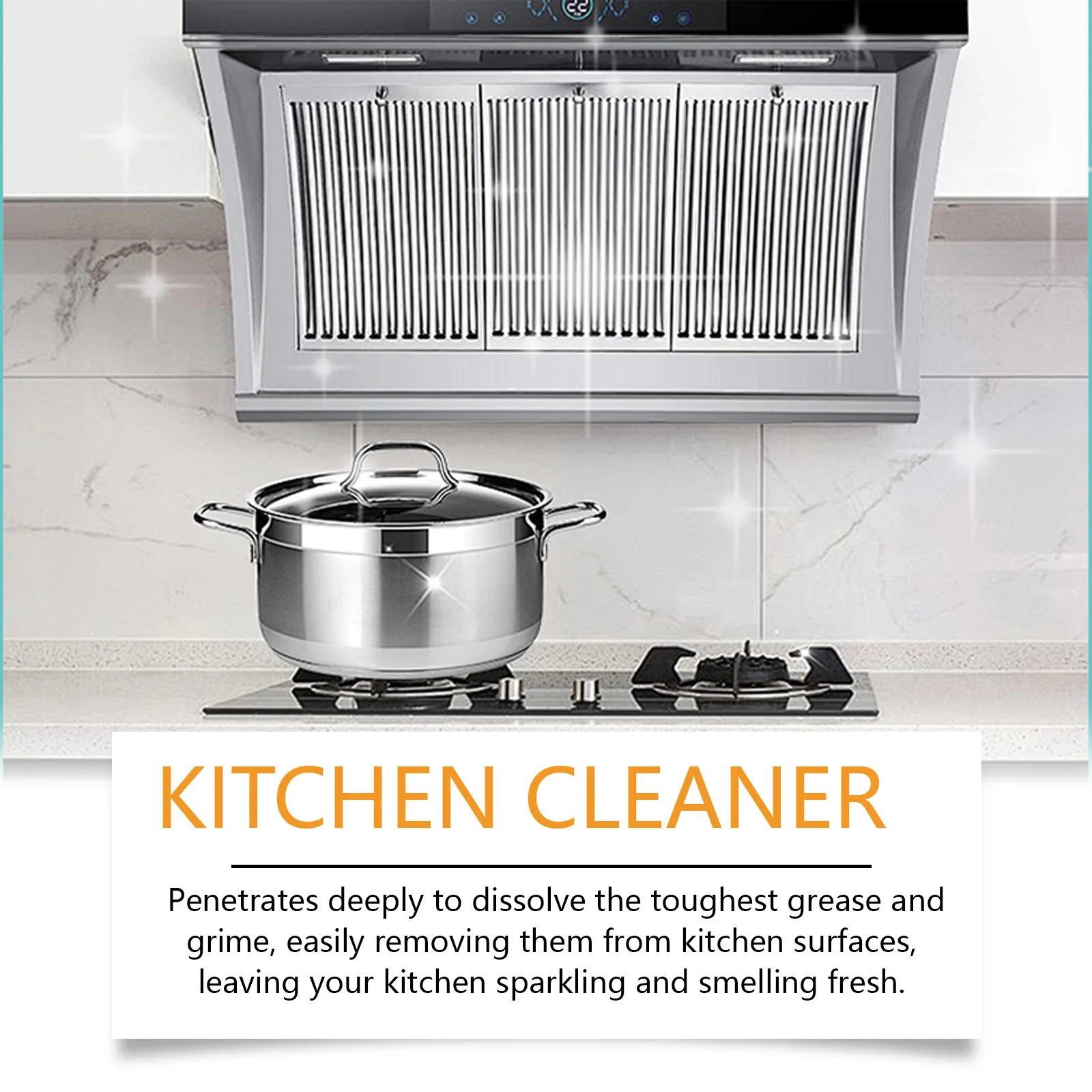 1. Kitchen Cleaning Foam effortlessly cleans and removes stubborn grease and dirty stains on various surfaces, including stoves and range hoods, worktops, cabinets, walls, and other surfaces around the house.