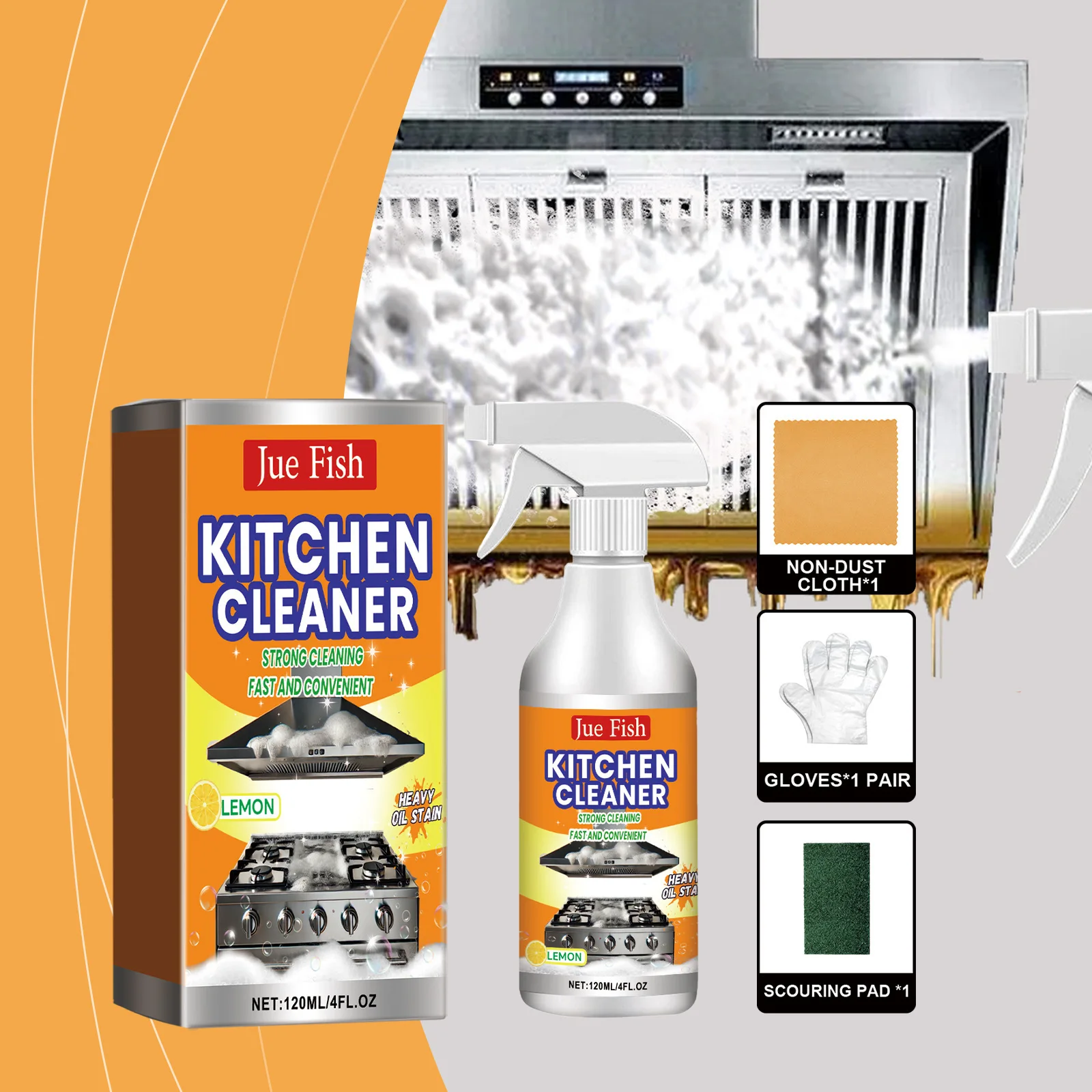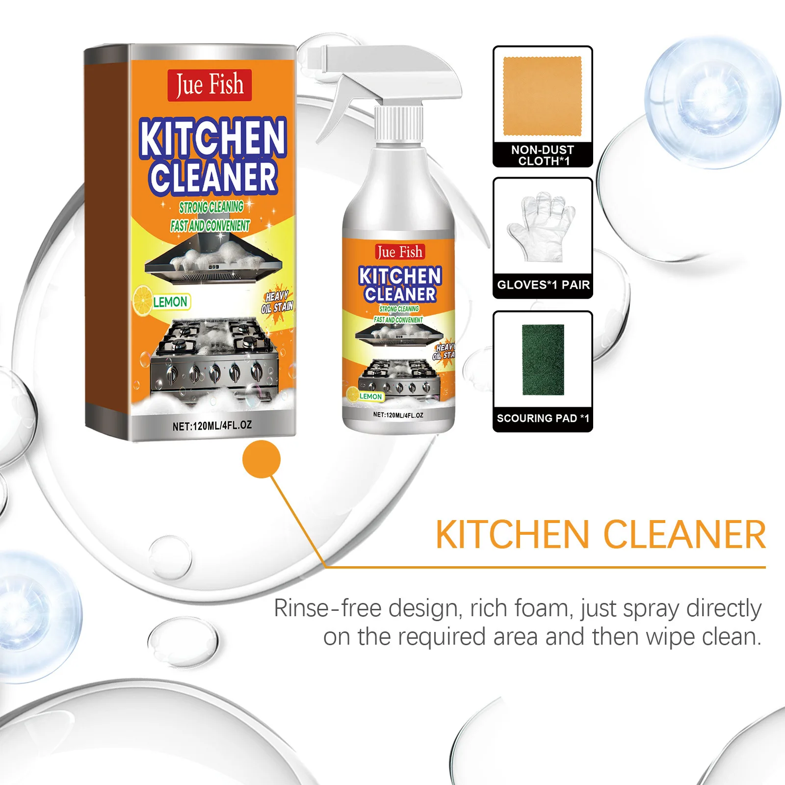 Jue Fish Kitchen Oil Stain Degreaser Pot Pan Stain Remover Grills Ovens Grease Cleaner Cooktop Cleaning Household Cleaning Bubble Spray 120ml